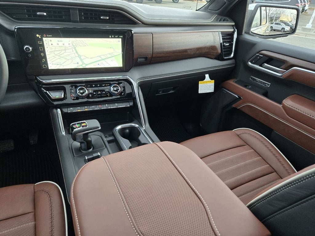 Preferred Equipment Group 5SB: Trailer Side Blind Zone Alert; Power Sliding Rear Window with Rear Defogger; Ultrasonic Front and Rear Park Assist; Trailer Camera Provisions; Electric Rear-Window Defogger; Theft Deterrent System (unauthorized Entry); High Gloss Black Header with Signature Denali Grille; Front Rain-Sensing Wipers; Heavy-Duty Air Filter; 120-Volt Interior Power Outlet; Heated Driver and Front Outboard Passenger Seating; Wireless Charging; Color-Keyed Carpeting Floor Covering; OnStar Services Capable; Heated 2nd Row Outboard Seats; Power Front Passenger Windows with Express Up/down; Power Rear Windows with Express Down; Integrated Trailer Brake Controller; HD Surround Vision; Ventilated Driver and Front Passenger Seats; Power Rake and Telescoping Steering Column; Power Sunroof; Multicolor 15" Diagonal Head-Up Display; Keyless Open and Start; Bose Premium Series with 12- Speaker System; Perimeter Lighting; Push Button Start; LED Cargo Area Lighting; Remote Vehicle Starter System; In-Vehicle Trailering System App; Hill Descent Control; Floor-Mounted Center Console; 6.2L EcoTec3 V8 Engine; MultiPro Tailgate Audio System by Kicker; Bed View Camera; Rear Cross Traffic Braking; Trailer Tire Pressure Monitor System; GMC Pro Safety; Trailering Package; 2 USB Ports; 2 Charge/data USB Ports Inside Center Console; Chrome Recovery Hooks; Denali Premium Suspension with Adaptive Ride Control; Steering Wheel Audio Controls; 2 type-C Charge-Only Rear USB Ports; Universal Home Remote; 2-Speed Transfer Case; Deep-Tinted Glass; Spray-On Pickup Bedliner with GMC Logo; SiriusXM with 360L Trial Subscription; Hitch View; Power Front Windows with Driver Express Up/down; Rear Pedestrian Detection; Wi-Fi Hotspot Capable; Rear Wheelhouse Liners; Aut