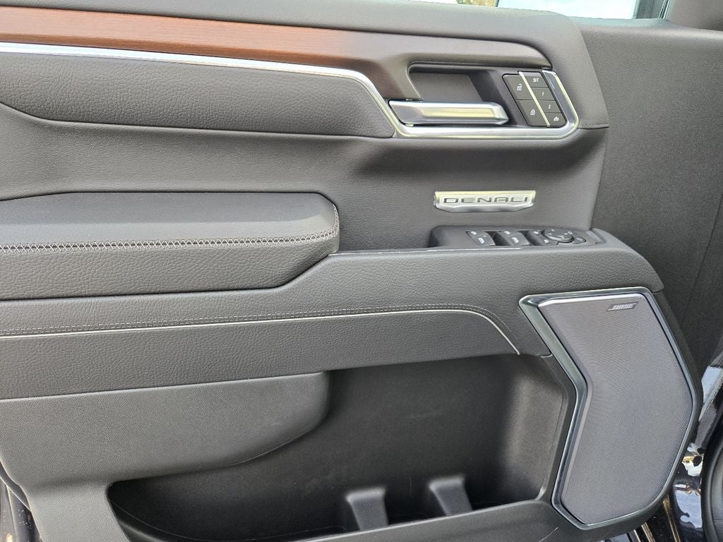 Technology Package: Multicolor 15" Diagonal Head-Up Display; Rear Camera Mirror. Preferred Equipment Group 5SA: Trailer Side Blind Zone Alert; Chrome Wheel to Wheel Assist Steps; Power Sliding Rear Window with Rear Defogger; Ultrasonic Front and Rear Park Assist; Trailer Camera Provisions; Electric Rear-Window Defogger; Theft Deterrent System (unauthorized Entry); Chrome Header with Signature Denali Chrome Grille; Front Rain-Sensing Wipers; Heavy-Duty Air Filter; 120-Volt Interior Power Outlet; Heated Driver and Front Outboard Passenger Seating; Wireless Charging; Color-Keyed Carpeting Floor Covering; OnStar Services Capable; Heated 2nd Row Outboard Seats; Power Front Passenger Windows with Express Up/down; Premium Bose 7-Speaker Sound System; Power Rear Windows with Express Down; Integrated Trailer Brake Controller; HD Surround Vision; Ventilated Driver and Front Passenger Seats; Power Rake and Telescoping Steering Column; Keyless Open and Start; Perimeter Lighting; Push Button Start; LED Cargo Area Lighting; Remote Vehicle Starter System; In-Vehicle Trailering System App; Hill Descent Control; Floor-Mounted Center Console; 170 Amp Alternator; 20" X 9" Multi-Dimensional Polished Aluminum Wheels; Bed View Camera; Auxiliary External Transmission Oil Cooler; Rear Cross Traffic Braking; GMC Pro Safety; Trailering Package; 2 USB Ports; 2 Charge/data USB Ports Inside Center Console; Chrome Recovery Hooks; Denali Premium Suspension with Adaptive Ride Control; Steering Wheel Audio Controls; 2 type-C Charge-Only Rear USB Ports; Universal Home Remote; 2-Speed Transfer Case; Deep-Tinted Glass; Spray-On Pickup Bedliner with GMC Logo; SiriusXM with 360L Trial Subscription; Hitch View; Power Front Windows with Driver Express Up/down; Rear