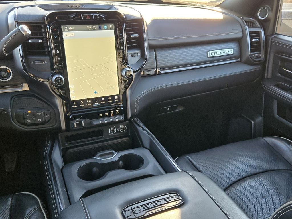 Quick Order Package 2HR Rebel: Conventional Differential Front Axle; Rear 60/40 Folding Seat; Electric Shift-On-the-fly Transfer Case; 4 Way Front Headrests; Heated Front Seats; Heated Steering Wheel; Painted Semi-Texture Film Instrument Panel Bezels; Limited Slip Rear Differential with Electronic Lock; 2 Way Rear Headrest Seat; High Back Seats; 4x4 Badge; 220 Amp Alternator; Black Wheel Center Hub; Power Adjust 8-Way Driver Seat; Folding Flat Load Floor Storage; 18" Steel Spare Wheel; Power 2-Way Driver Lumbar Adjust. Level 2 Equipment Group: Google Android Auto; SiriusXM Radio Service; Power Adjustable Pedals with Memory; For Details. Visit DriveUconnect.com; For More Info. Call 800-643-2112; Integrated Voice Command with Bluetooth®; 12" Touchscreen Display; Auto Power-Folding Mirrors; Electric Shift-On-the-fly Transfer Case; Mirror Running Lights; Alexa Built-In; Security Alarm; Apple CarPlay; Power Adjustable Convex Aux Mirrors; Premium Overhead Console; Forward and Reverse Utility Lights; Disassociated Touchscreen Display; 17 Speaker Harman/kardon Premium Sound; LED Interior Lighting; LED Dome Lamp with On/off Switch; Leather Faced Front Bucket Seats; Black Rotary Shifter with Silver Stripe; Rear Window Defroster; Rain Sensitive Windshield Wipers; Rear Power Sliding Window; Connectivity - US/Canada; Body Color Door Handles; GPS Navigation; 4G LTE Wi-Fi Hot Spot; GPS Antenna Input; Overhead LED Lamps; Exterior Mirrors with Heating Element; Auto Dim Exterior Mirror; SiriusXM with 360L; Global Telematics Box Module; Bi-Function LED Projector Headlamps; Leather Wrapped Grab Hand