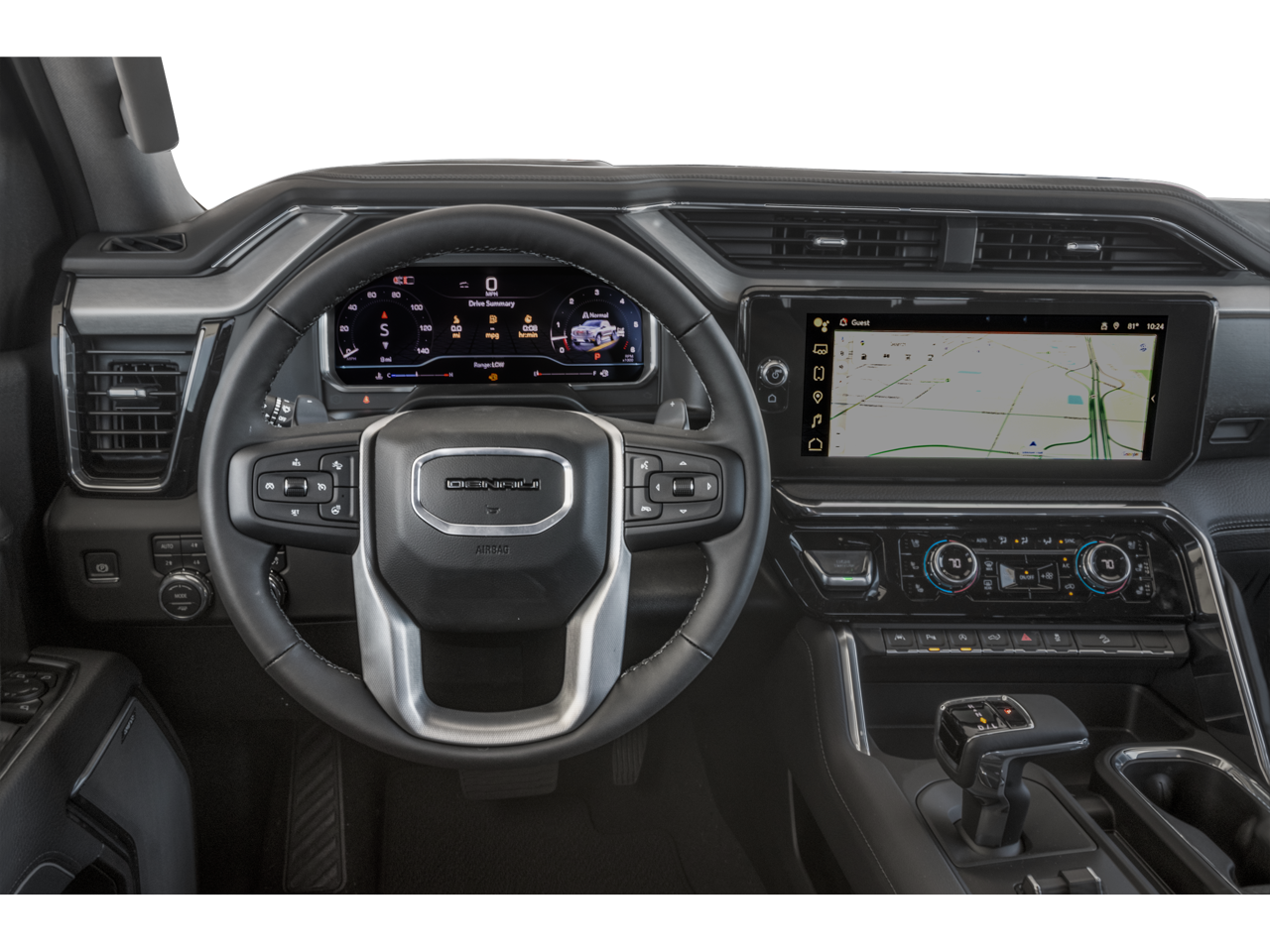 Technology Package: Multicolor 15" Diagonal Head-Up Display; Rear Camera Mirror. Preferred Equipment Group 5SA: Trailer Side Blind Zone Alert; Chrome Wheel to Wheel Assist Steps; Power Sliding Rear Window with Rear Defogger; Ultrasonic Front and Rear Park Assist; Trailer Camera Provisions; Electric Rear-Window Defogger; Theft Deterrent System (unauthorized Entry); Chrome Header with Signature Denali Chrome Grille; Front Rain-Sensing Wipers; Heavy-Duty Air Filter; 120-Volt Interior Power Outlet; Heated Driver and Front Outboard Passenger Seating; Wireless Charging; Color-Keyed Carpeting Floor Covering; OnStar Services Capable; Heated 2nd Row Outboard Seats; Power Front Passenger Windows with Express Up/down; Premium Bose 7-Speaker Sound System; Power Rear Windows with Express Down; Integrated Trailer Brake Controller; HD Surround Vision; Ventilated Driver and Front Passenger Seats; Power Rake and Telescoping Steering Column; Keyless Open and Start; Perimeter Lighting; Push Button Start; LED Cargo Area Lighting; Remote Vehicle Starter System; In-Vehicle Trailering System App; Hill Descent Control; Floor-Mounted Center Console; 170 Amp Alternator; 20" X 9" Multi-Dimensional Polished Aluminum Wheels; Bed View Camera; Auxiliary External Transmission Oil Cooler; Rear Cross Traffic Braking; GMC Pro Safety; Trailering Package; 2 USB Ports; 2 Charge/data USB Ports Inside Center Console; Chrome Recovery Hooks; Denali Premium Suspension with Adaptive Ride Control; Steering Wheel Audio Controls; 2 type-C Charge-Only Rear USB Ports; Universal Home Remote; 2-Speed Transfer Case; Deep-Tinted Glass; Spray-On Pickup Bedliner with GMC Logo; SiriusXM with 360L Trial Subscription; Hitch View; Power Front Windows with Driver Ex